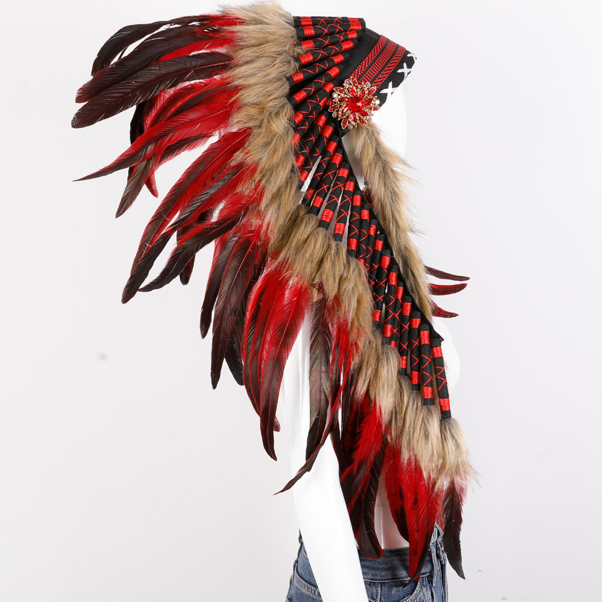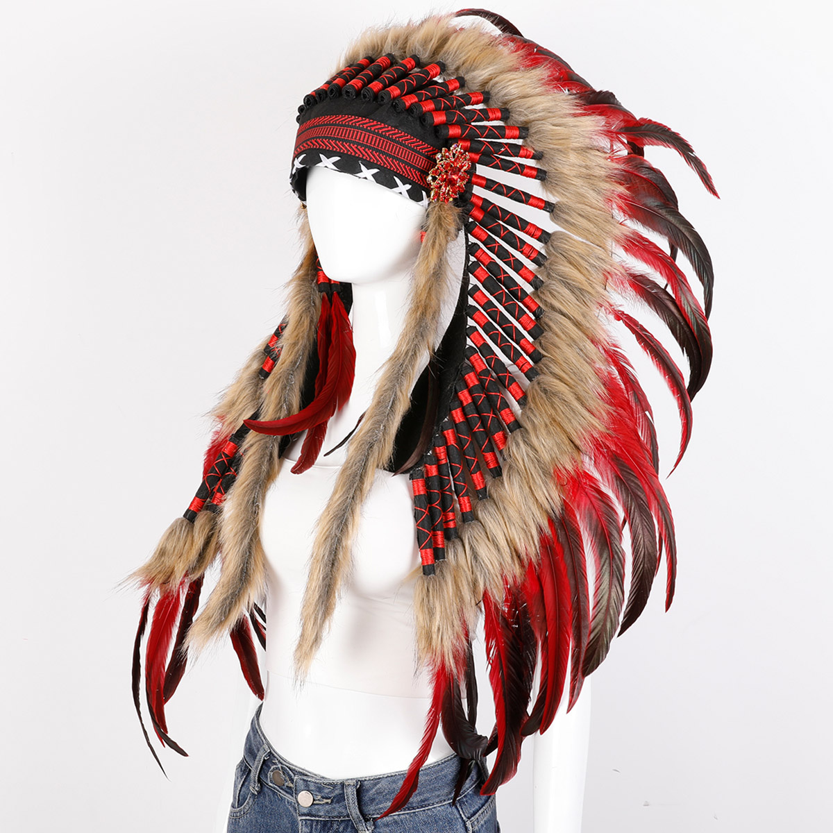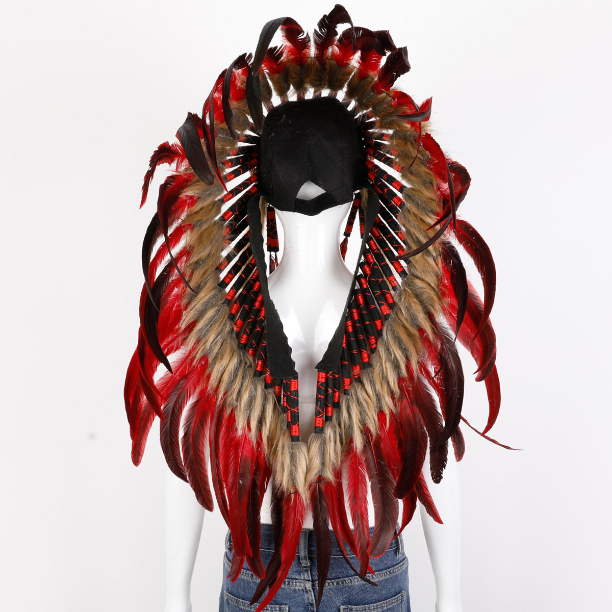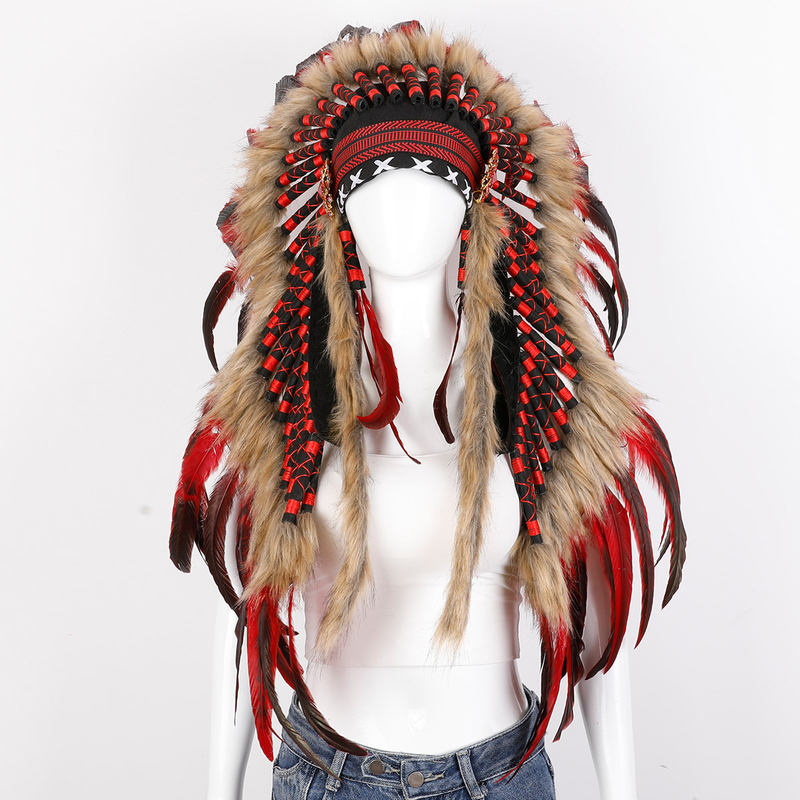 This Indian style headdress is made of natural feathers, and can be matched with feathers of different colors according to different preferences. This headdress is widely used in gatherings of major festivals such as Carnival and Halloween.