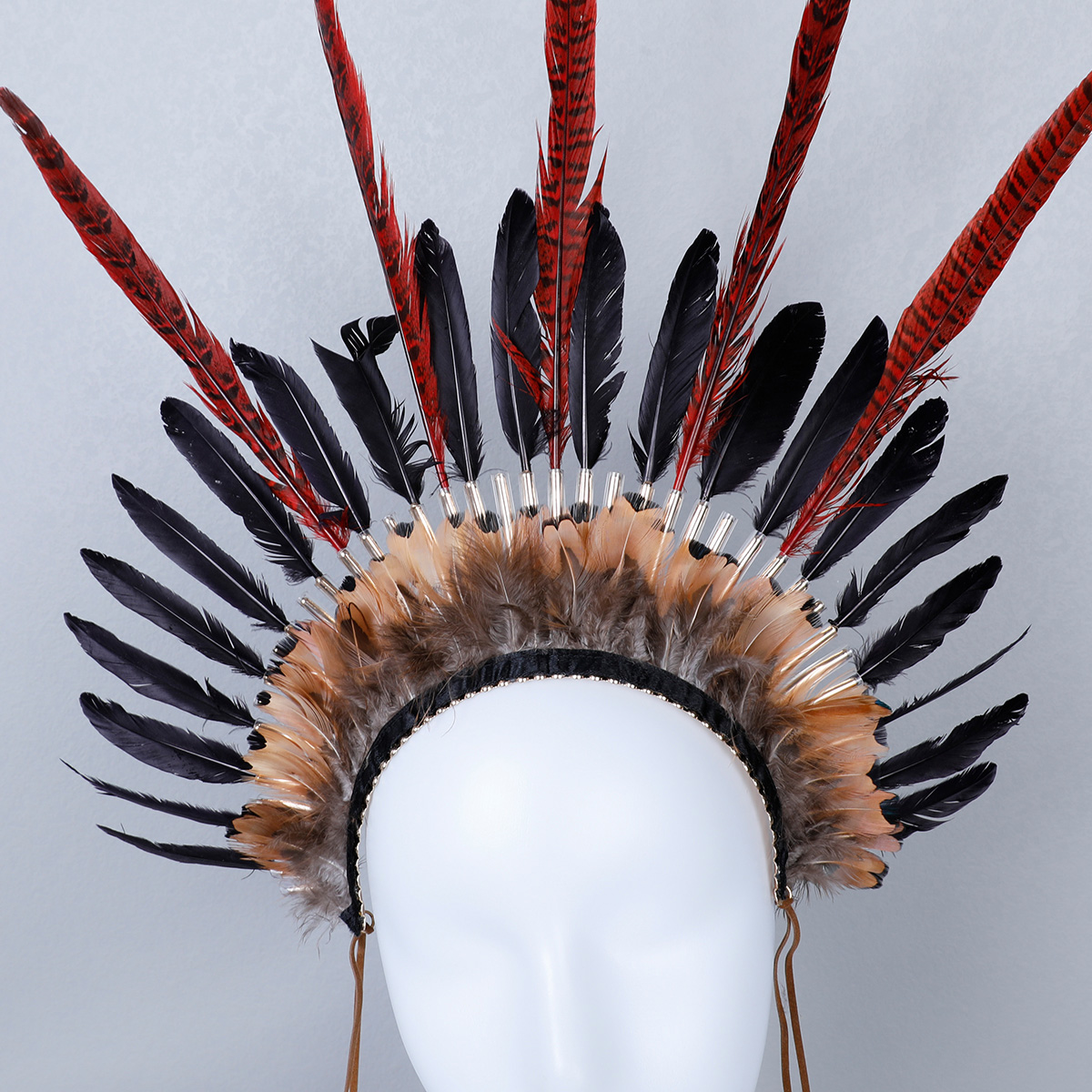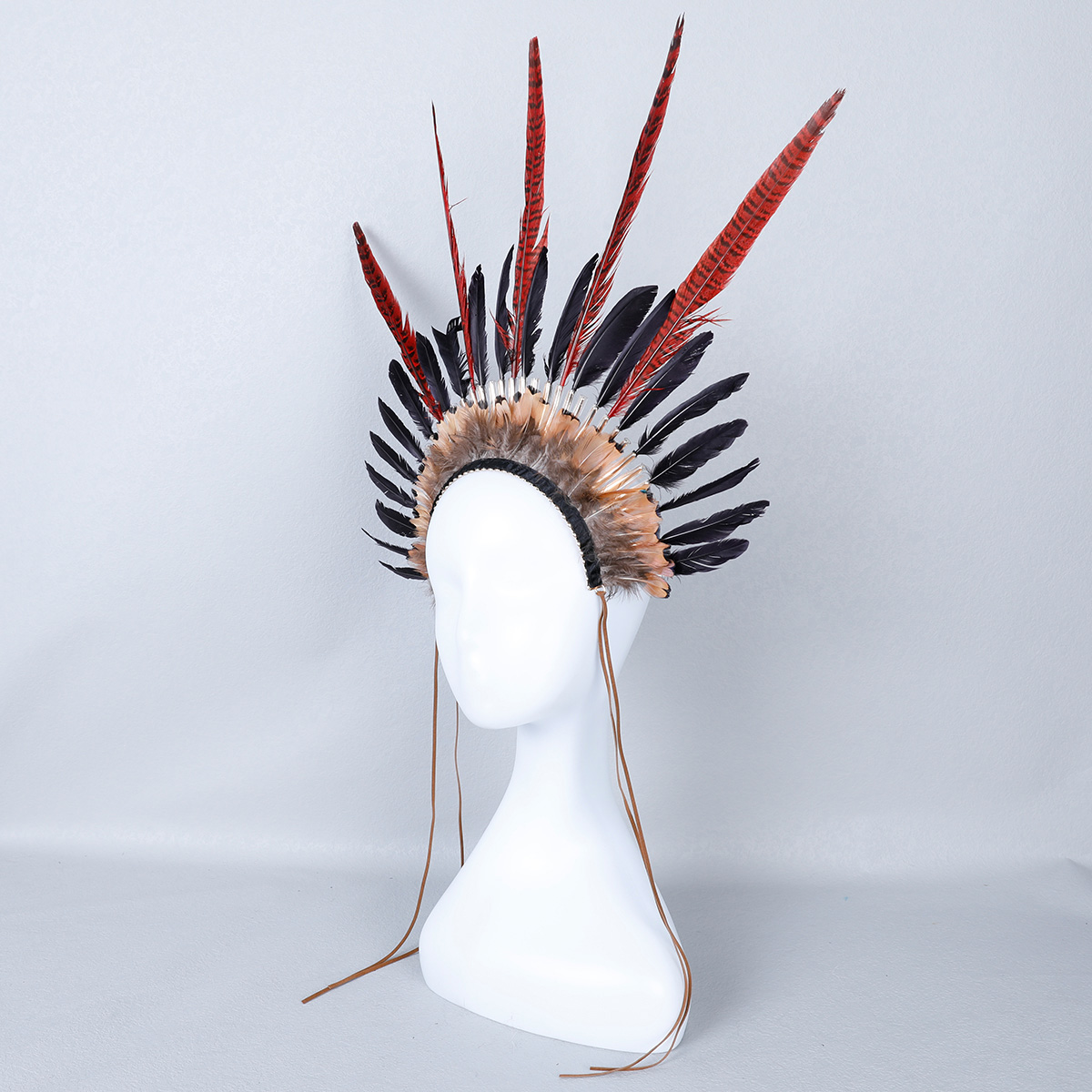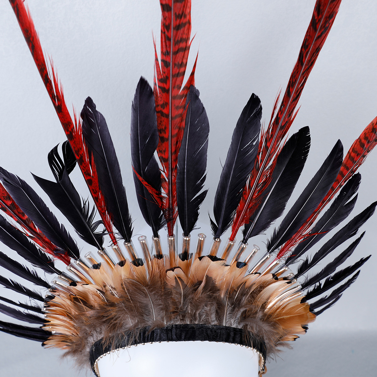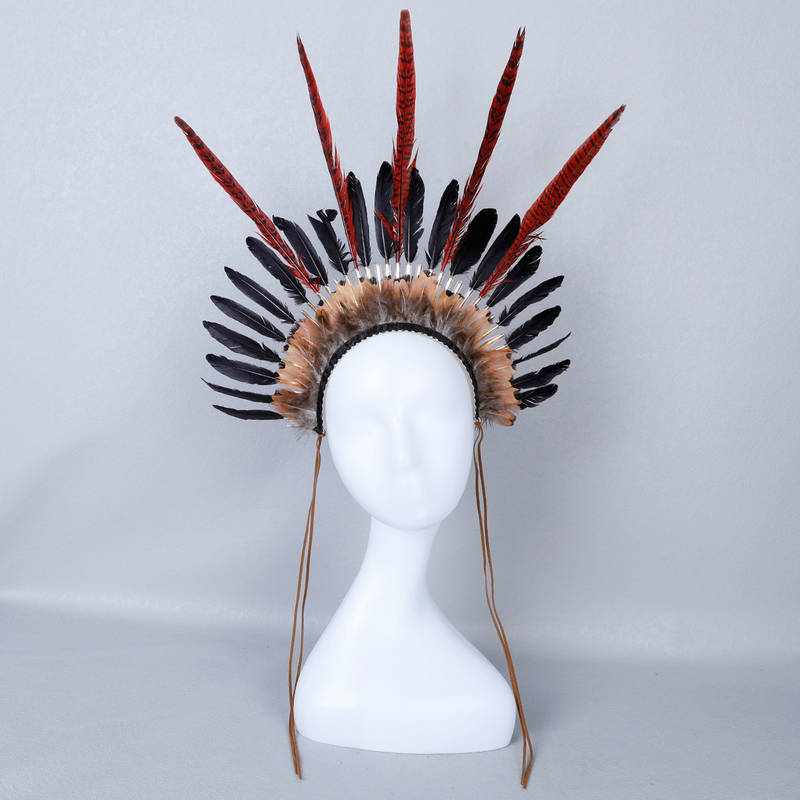 This Indian style headdress is made of natural feathers, and can be matched with feathers of different colors according to different preferences. This headdress is widely used in gatherings of major festivals such as Carnival and Halloween.