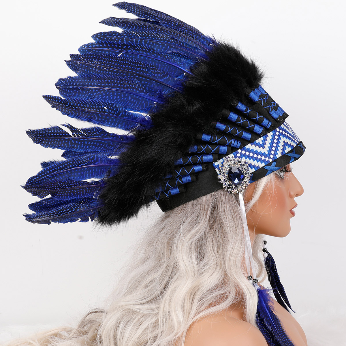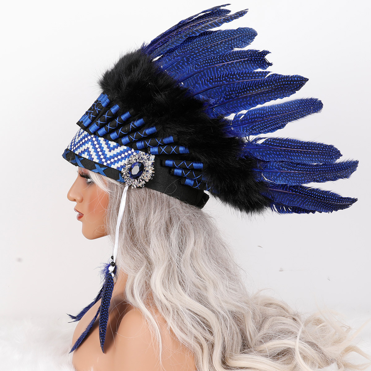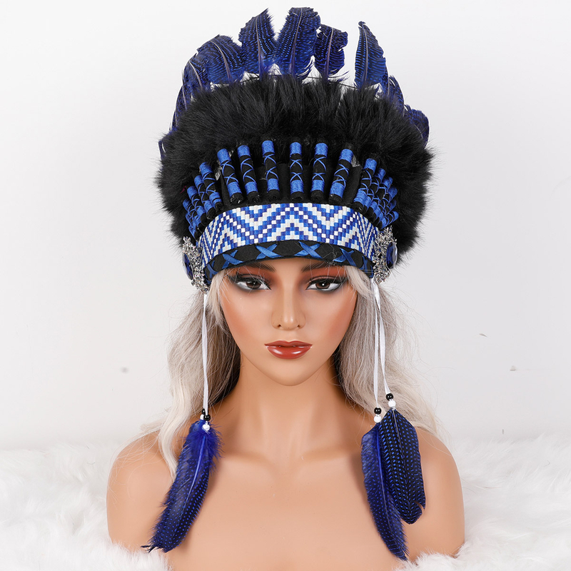This Indian style headdress is made of natural feathers, and can be matched with feathers of different colors according to different preferences. This headdress is widely used in gatherings of major festivals such as Carnival and Halloween.