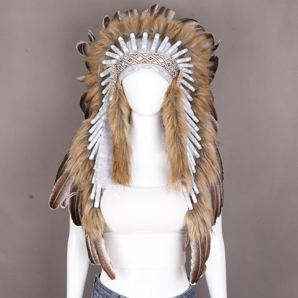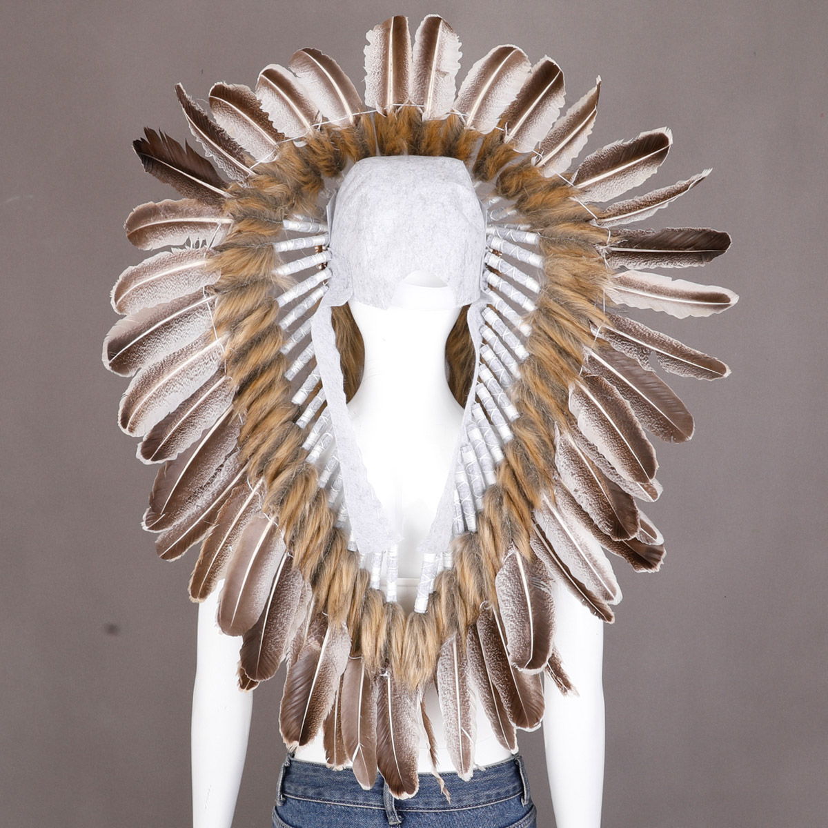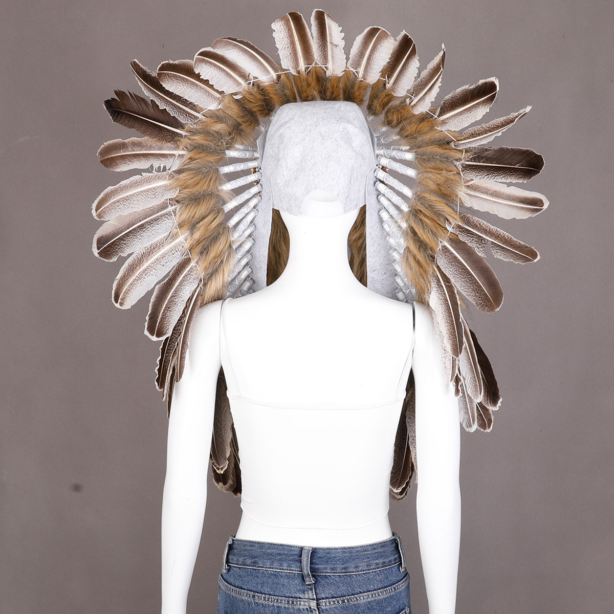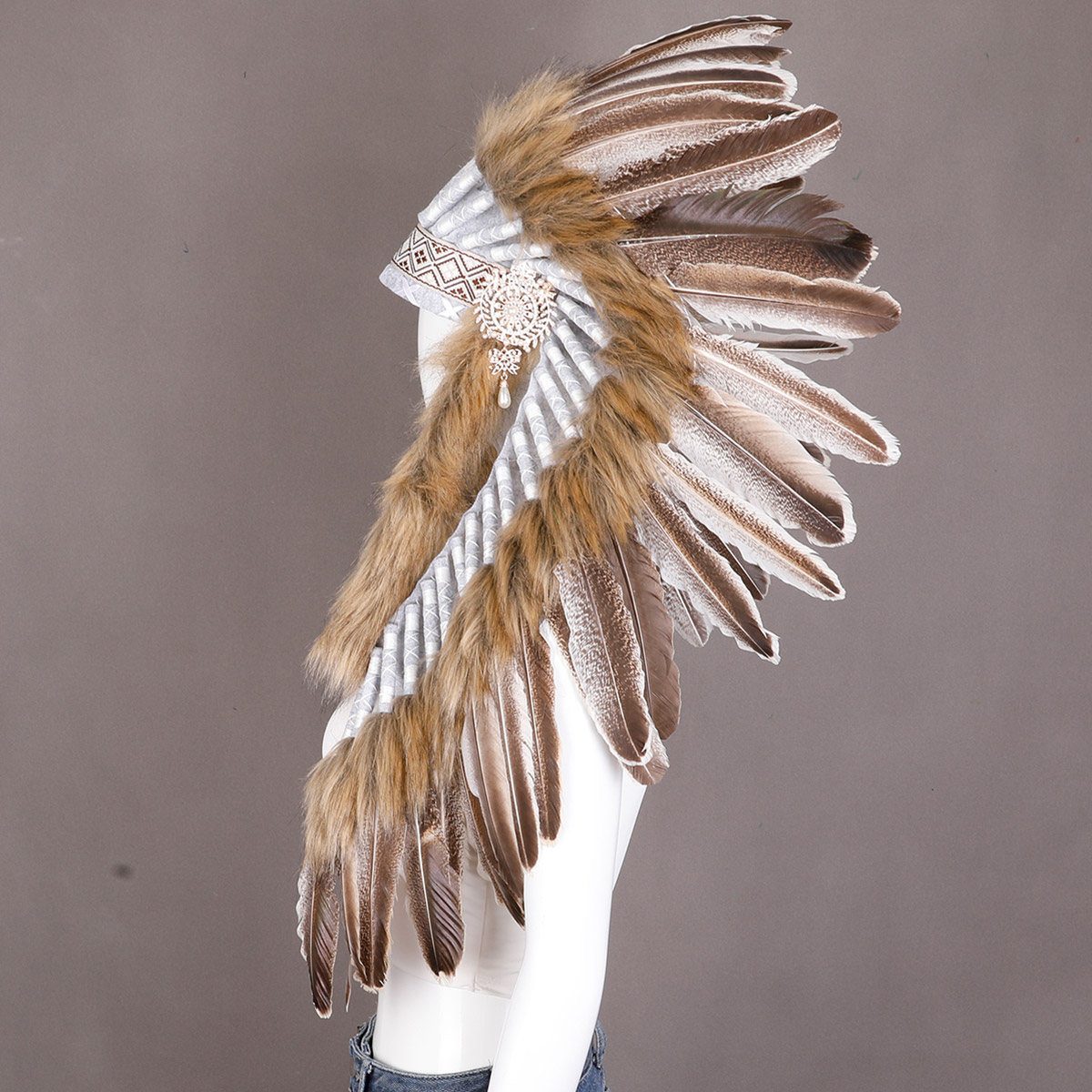 This Indian style headdress is made of natural feathers, and can be matched with feathers of different colors according to different preferences. This headdress is widely used in gatherings of major festivals such as Carnival and Halloween.