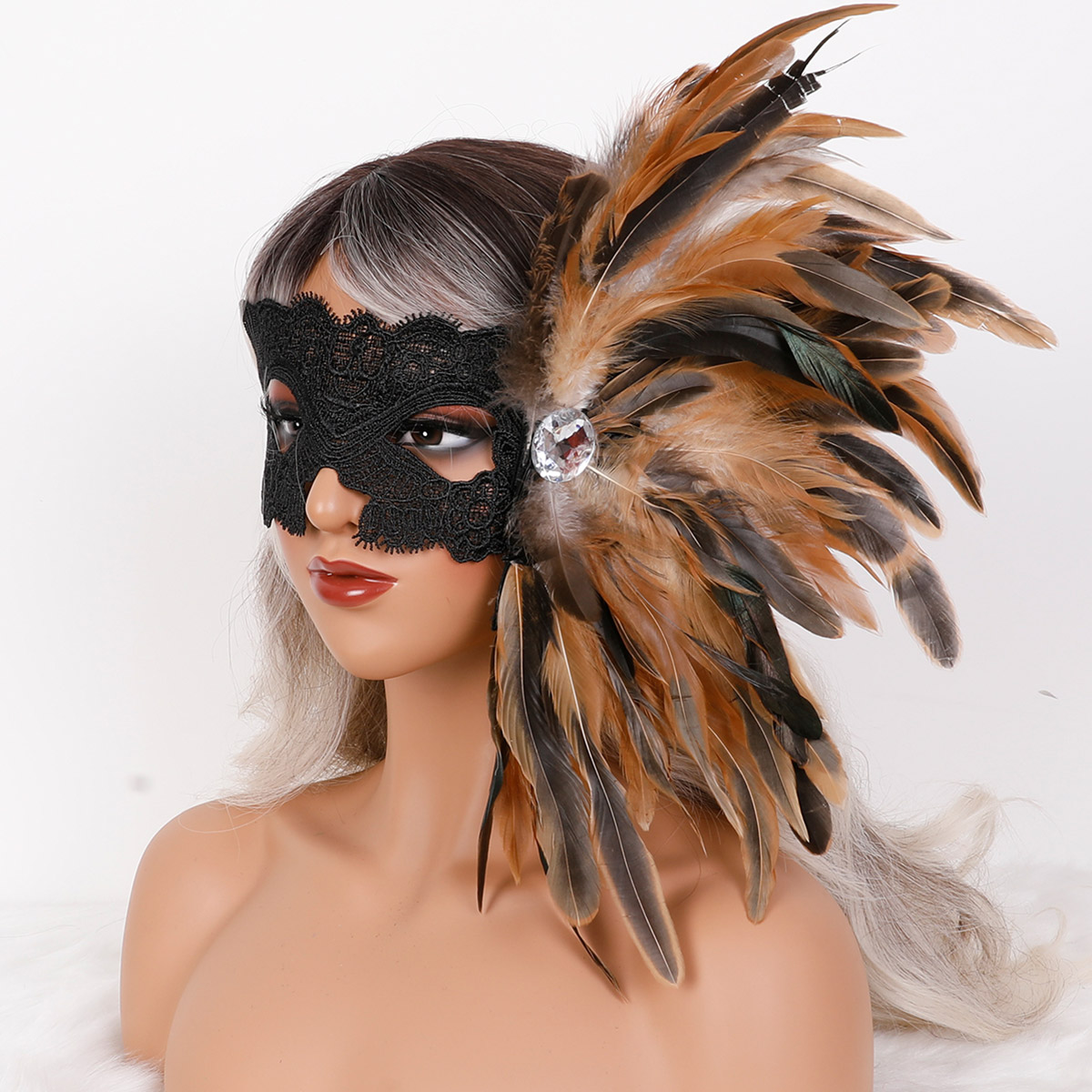 Material: This Showgirl accessory is hand dyed rooster cocktail feathers with an elastic band on the headband, perfect for your head shape. Feather headgear and mask can be separated and paired according to personal preferences.