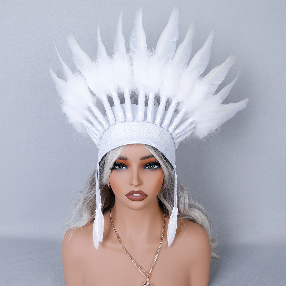 This Indian style headdress is made of natural feathers, and can be matched with feathers of different colors according to different preferences. This headdress is widely used in gatherings of major festivals such as Carnival and Halloween.