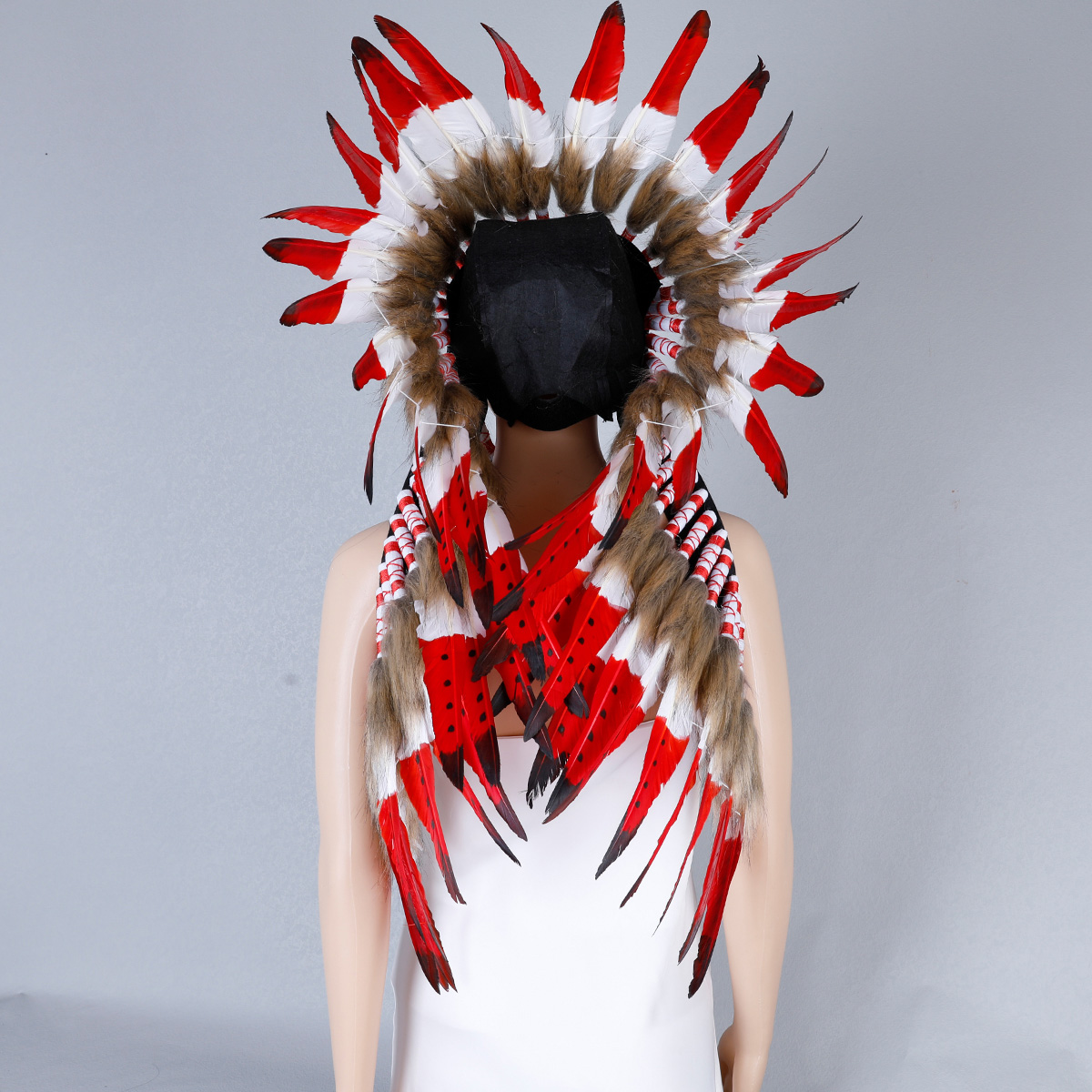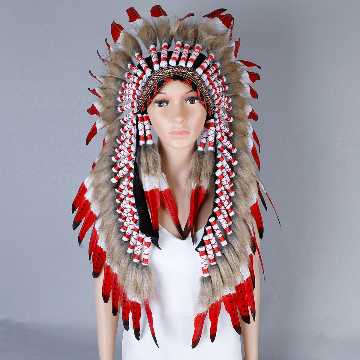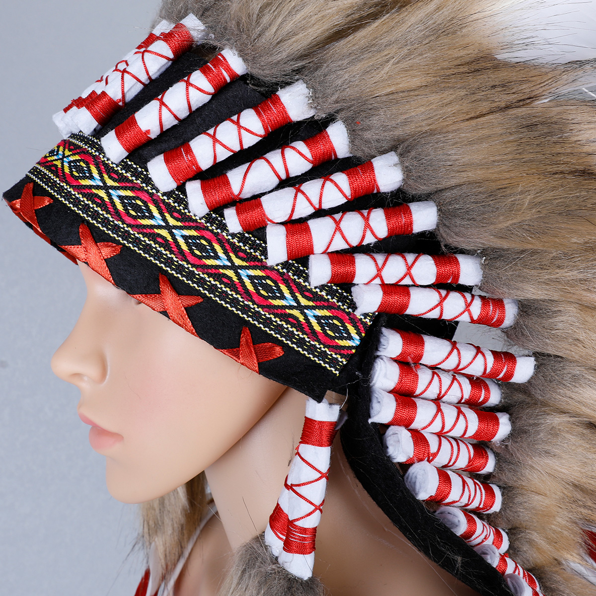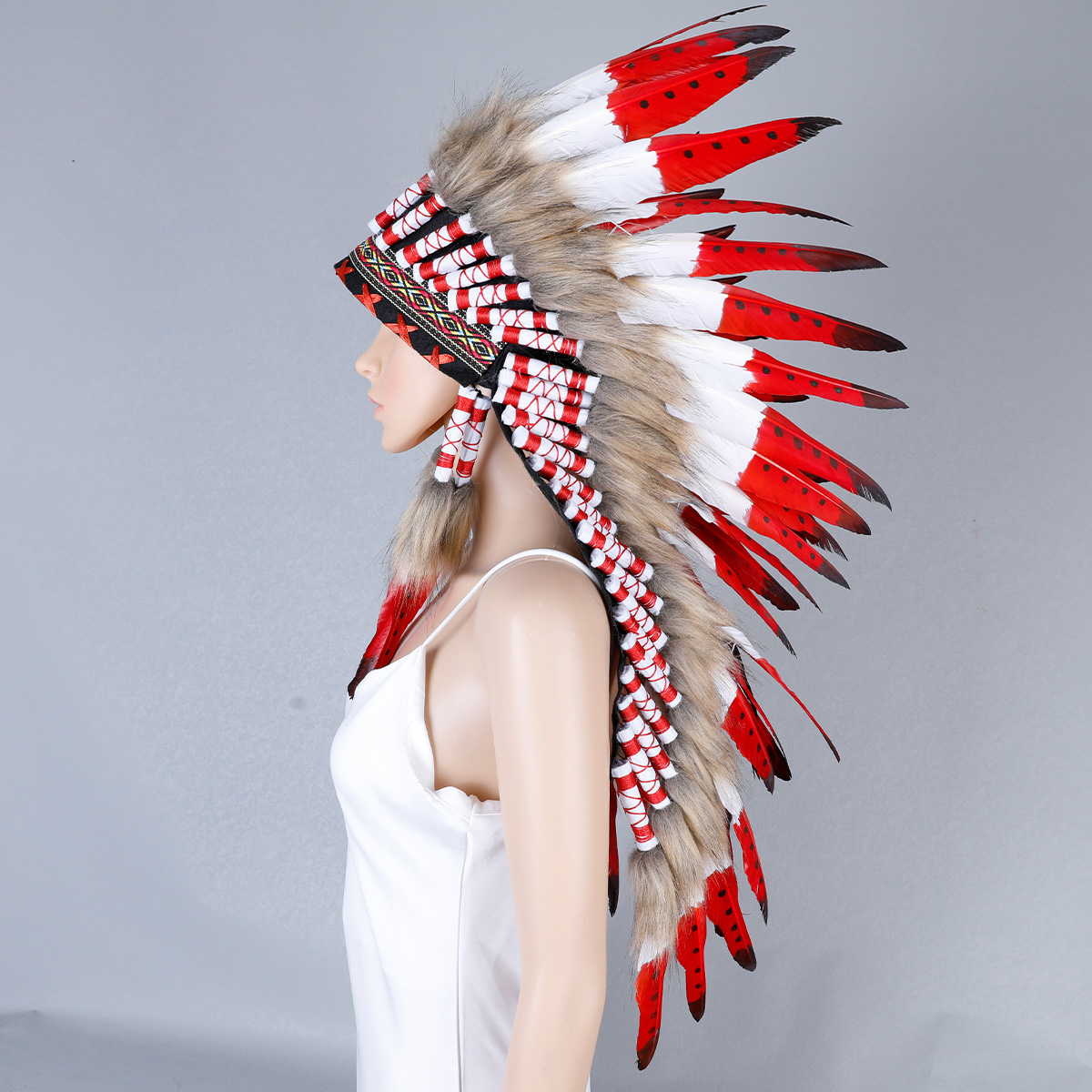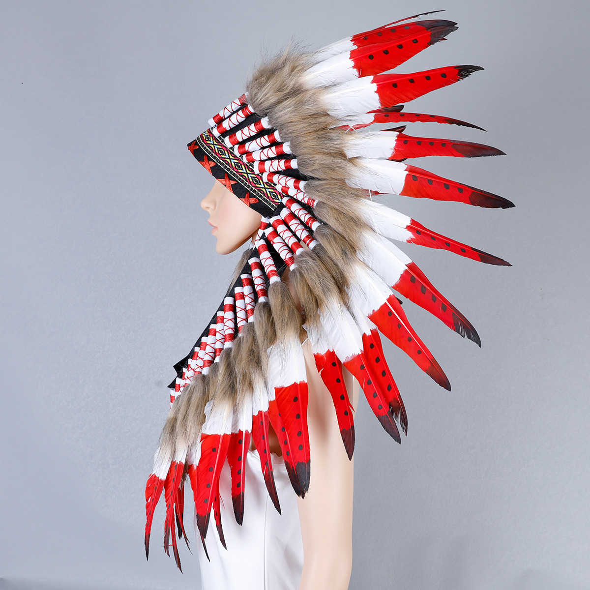 This Indian style headdress is made of natural feathers, and can be matched with feathers of different colors according to different preferences. This headdress is widely used in gatherings of major festivals such as Carnival and Halloween.