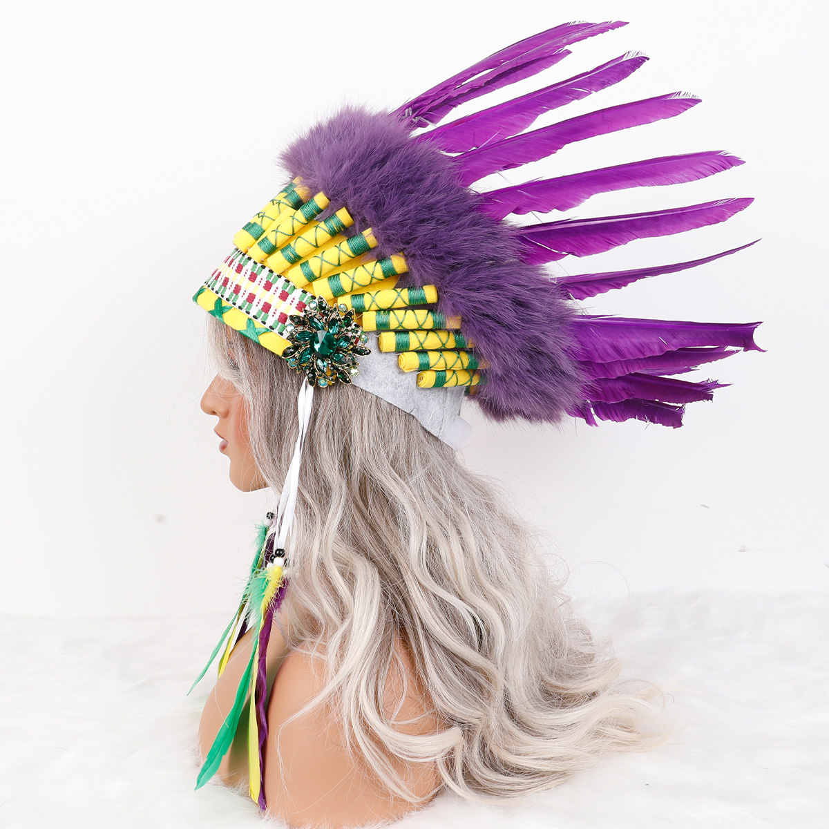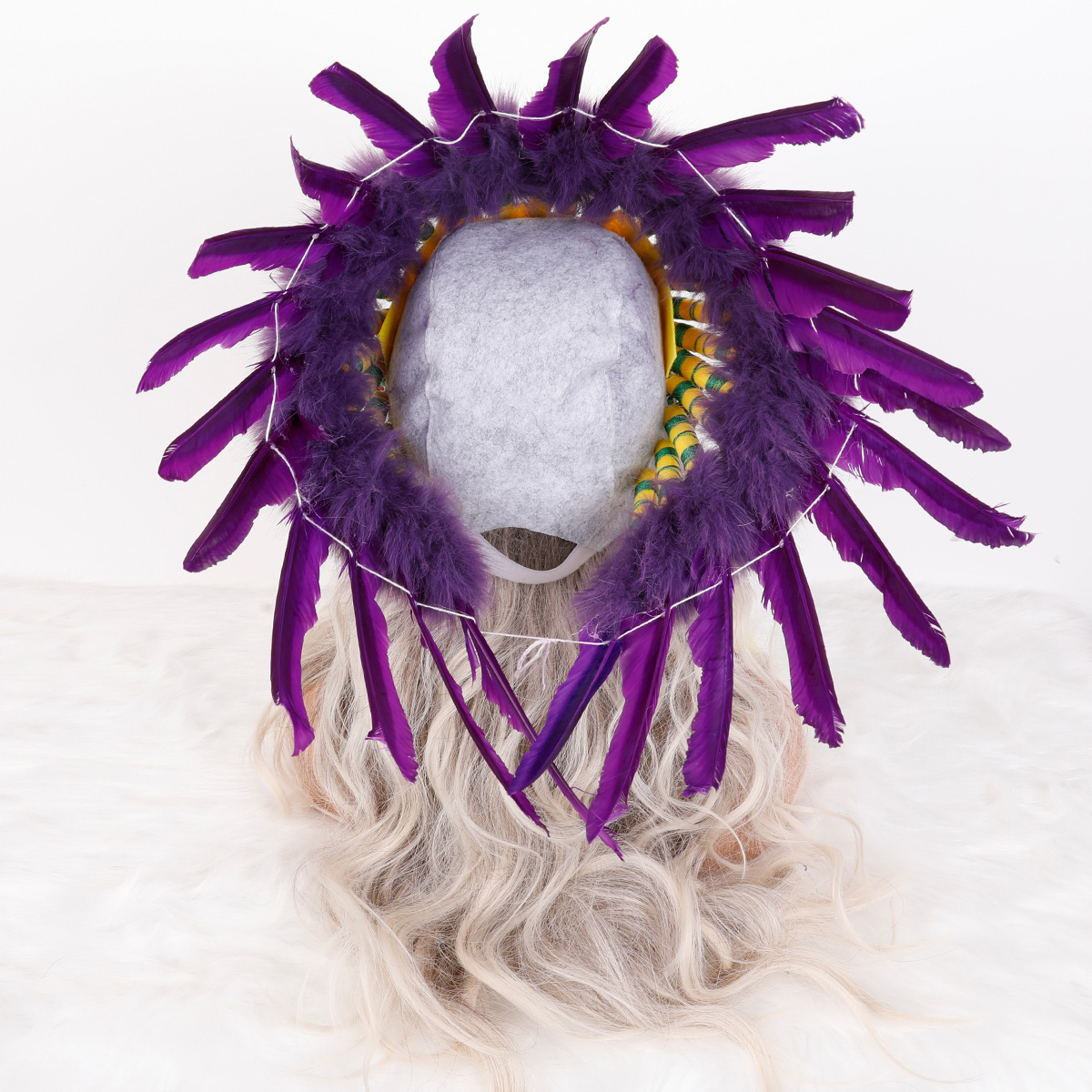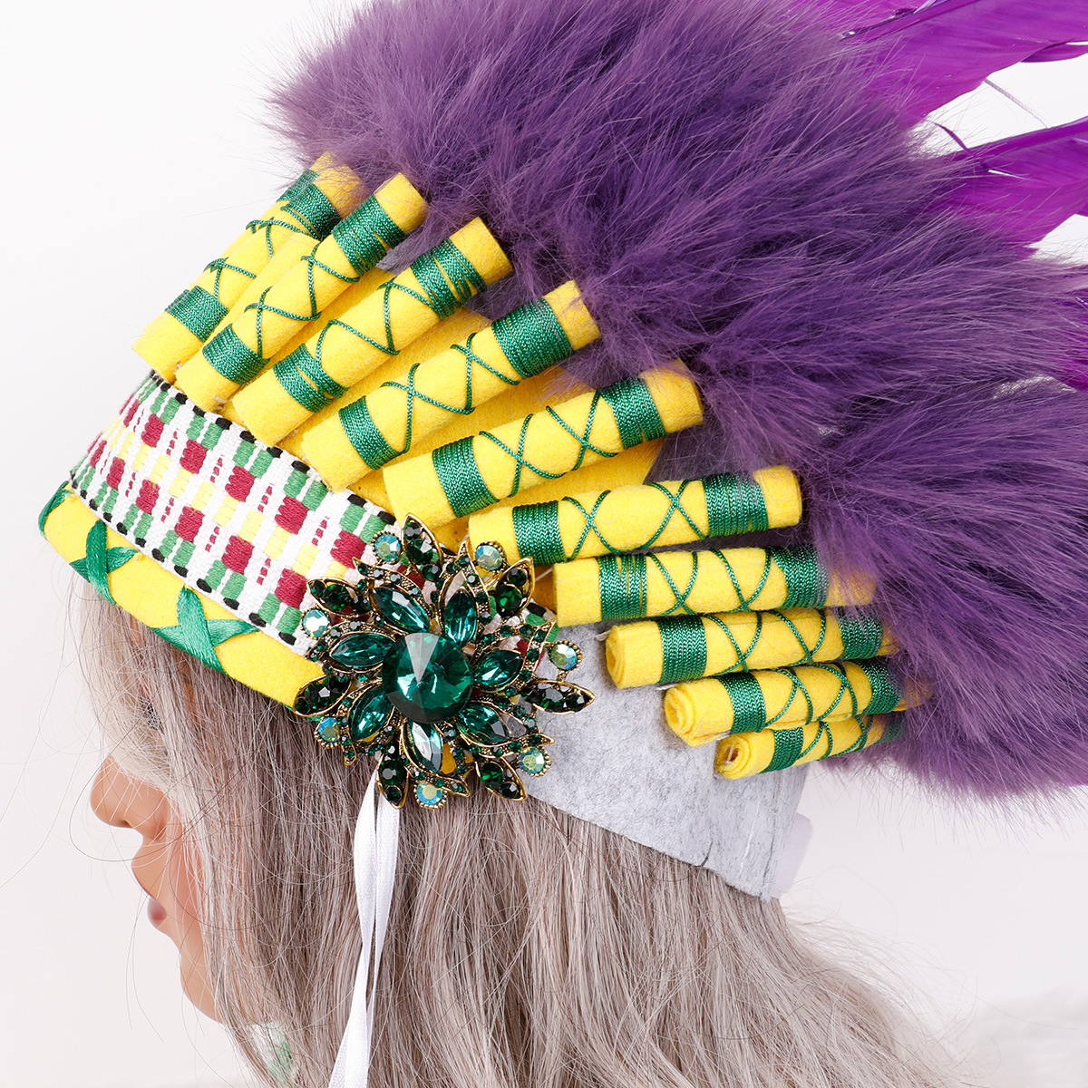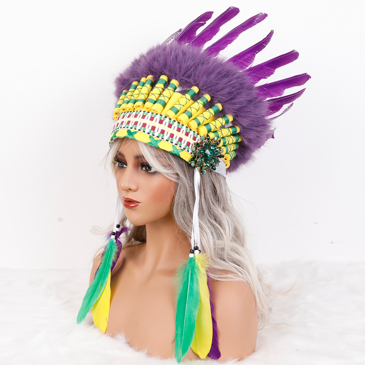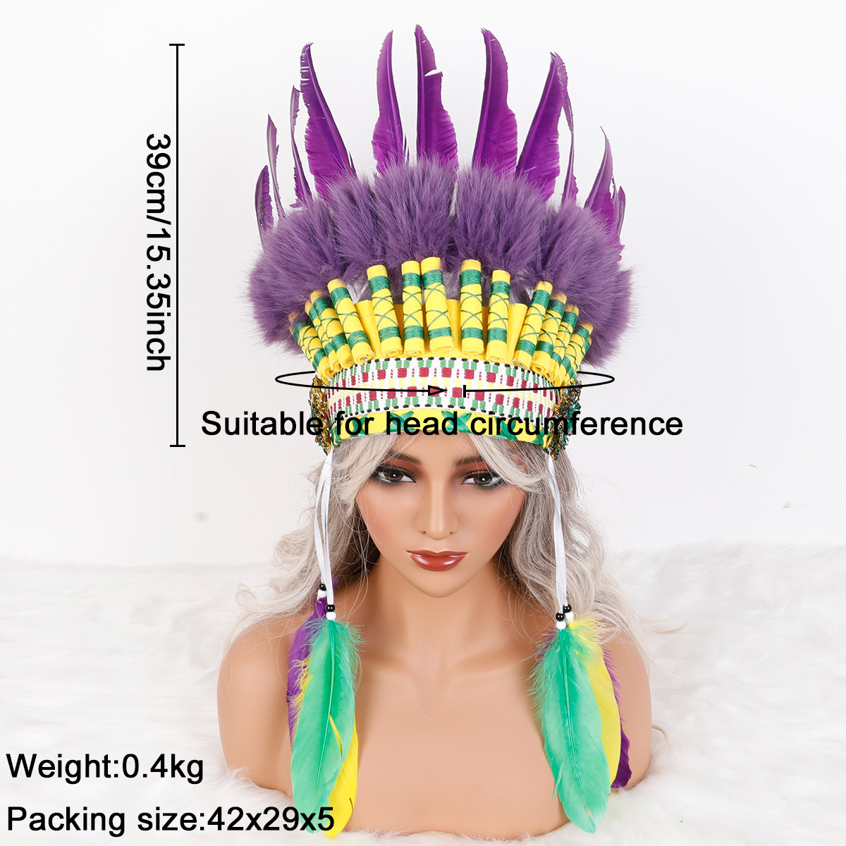 This Indian style headdress is made of natural feathers, and can be matched with feathers of different colors according to different preferences. This headdress is widely used in gatherings of major festivals such as Carnival and Halloween.