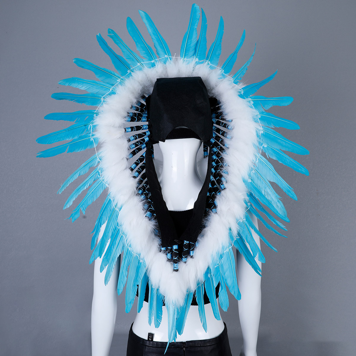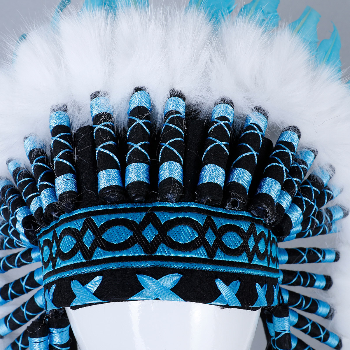 This Indian style headdress is made of natural feathers, and can be matched with feathers of different colors according to different preferences. This headdress is widely used in gatherings of major festivals such as Carnival and Halloween.