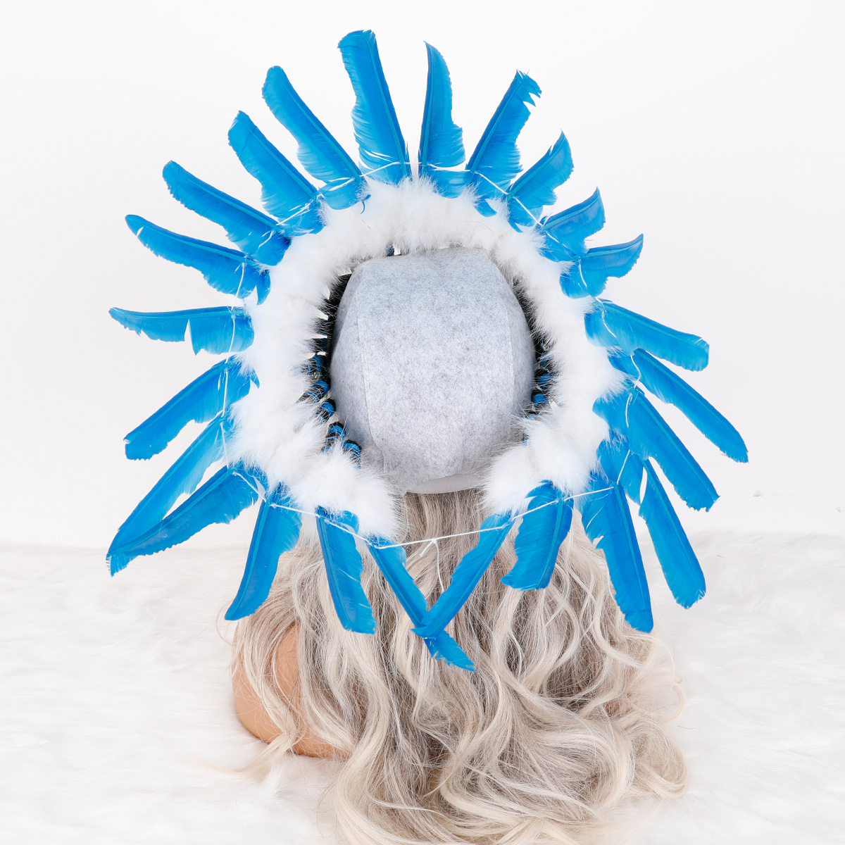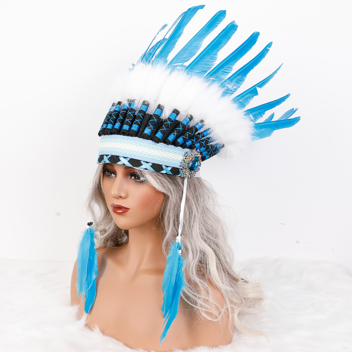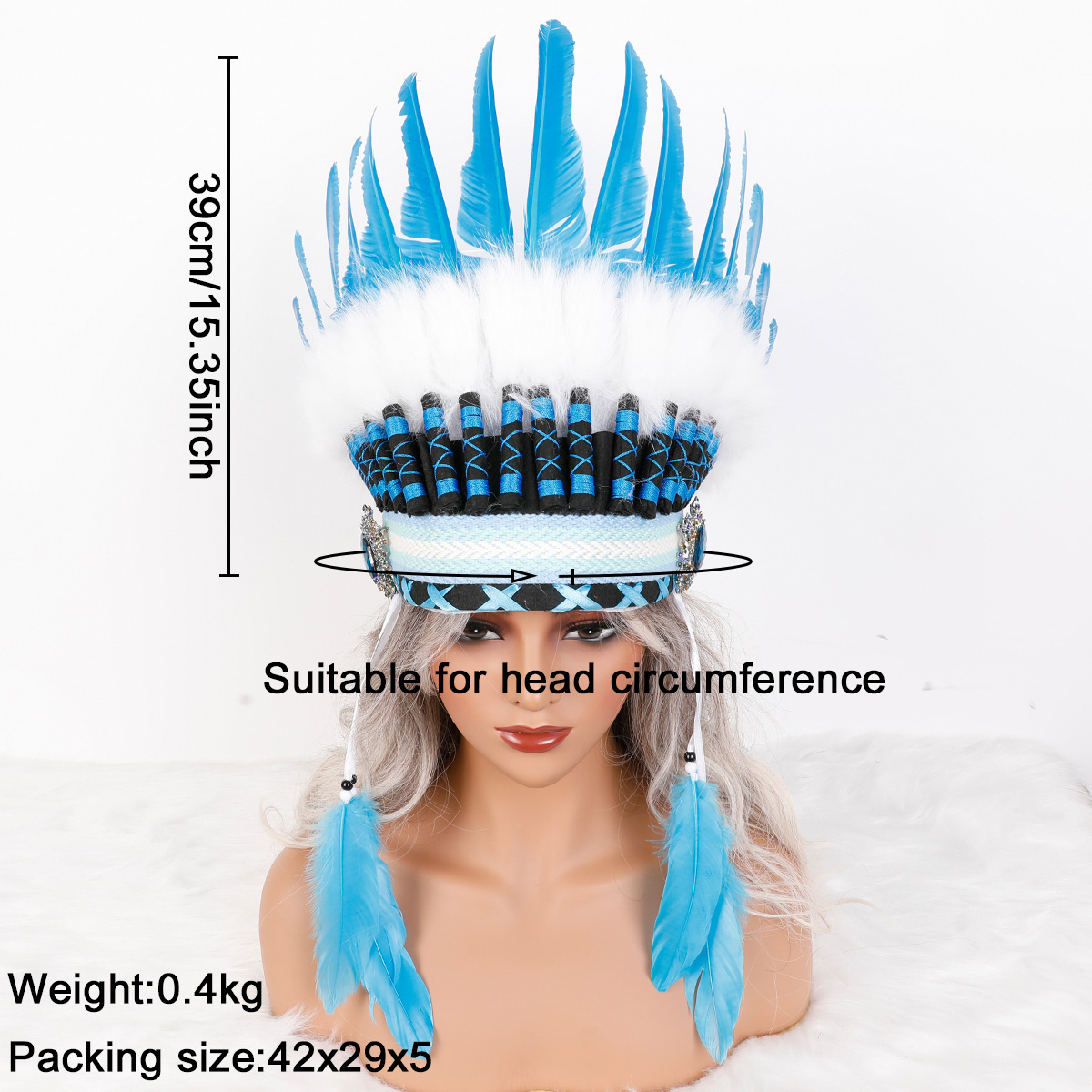 This Indian style headdress is made of natural feathers, and can be matched with feathers of different colors according to different preferences. This headdress is widely used in gatherings of major festivals such as Carnival and Halloween.