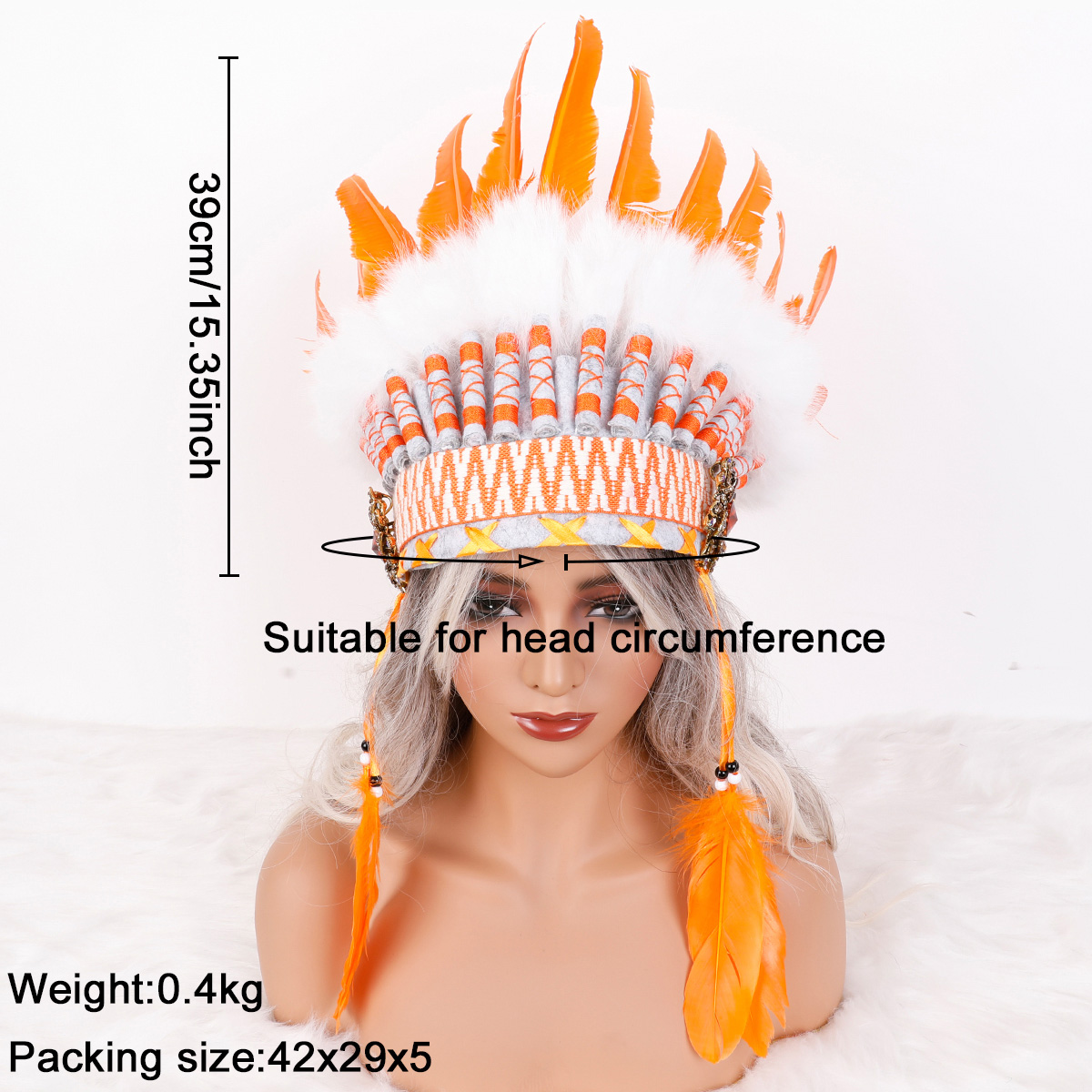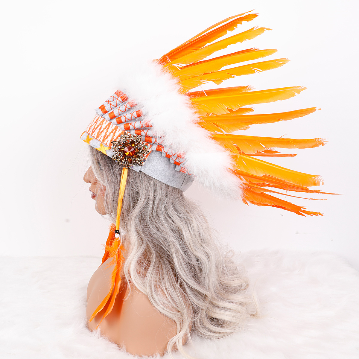 This Indian style headdress is made of natural feathers, and can be matched with feathers of different colors according to different preferences. This headdress is widely used in gatherings of major festivals such as Carnival and Halloween.