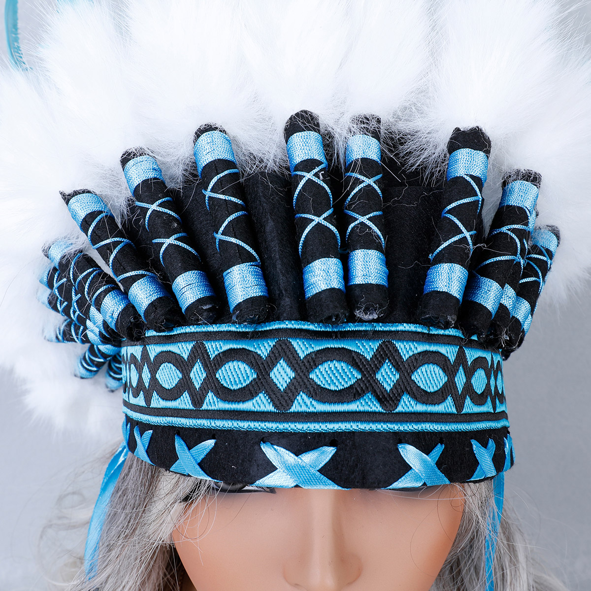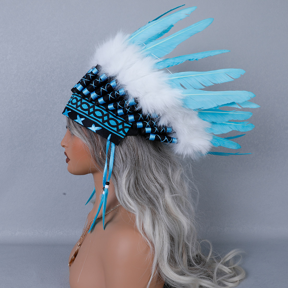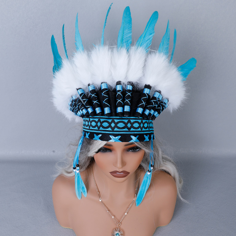 This Indian style headdress is made of natural feathers, and can be matched with feathers of different colors according to different preferences. This headdress is widely used in gatherings of major festivals such as Carnival and Halloween.