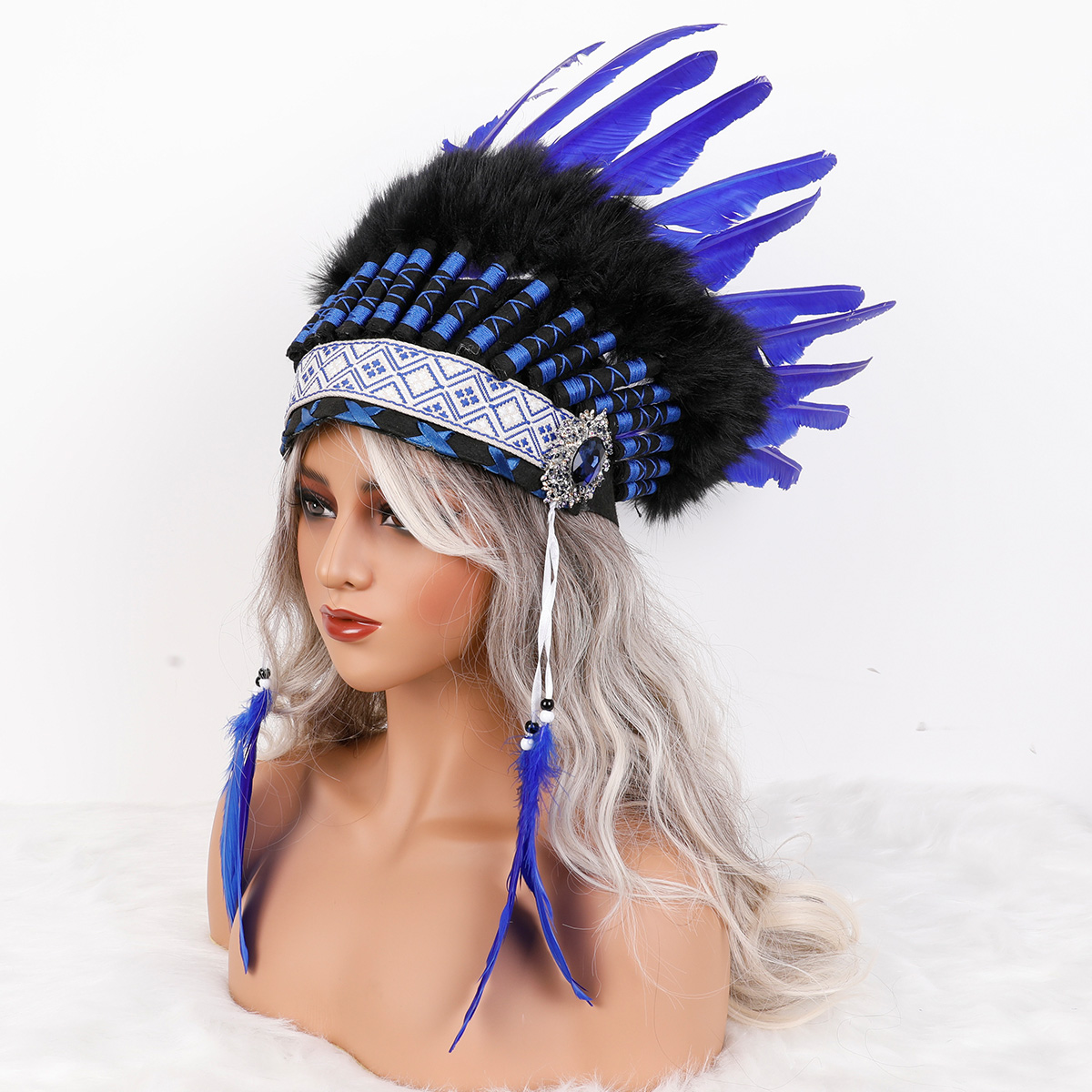 This Indian style headdress is made of natural feathers, and can be matched with feathers of different colors according to different preferences. This headdress is widely used in gatherings of major festivals such as Carnival and Halloween.