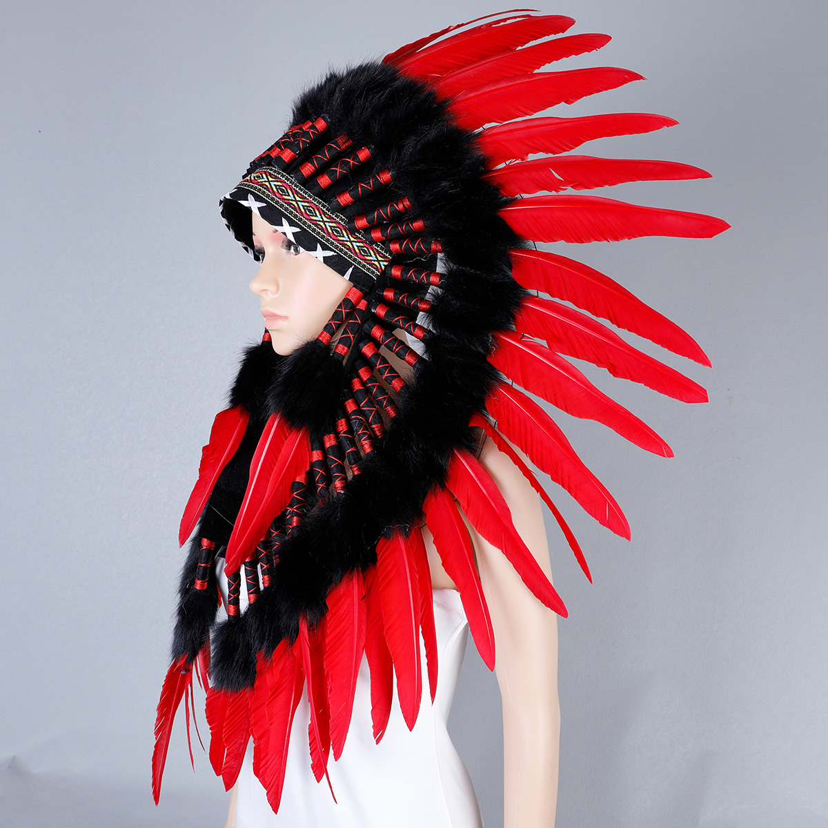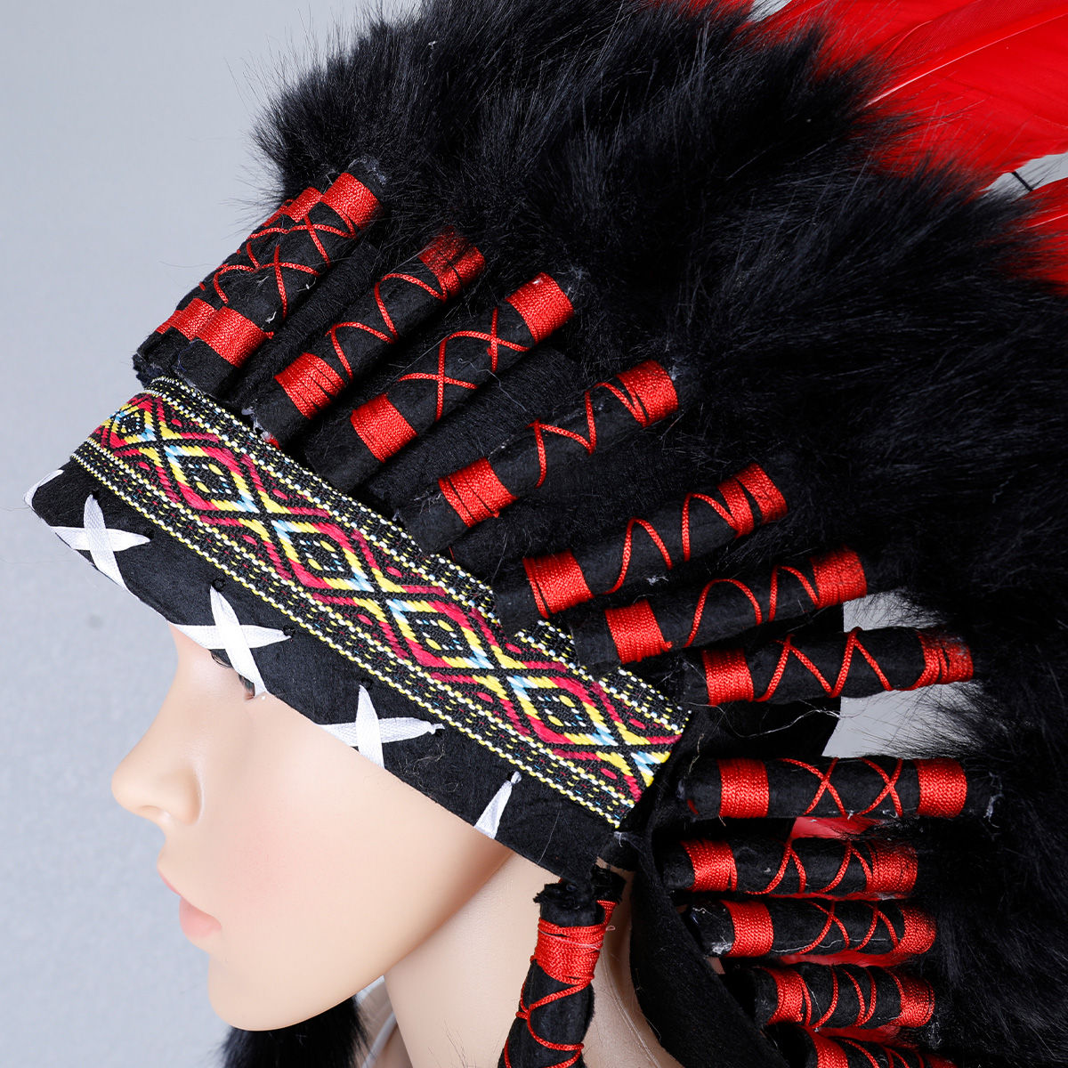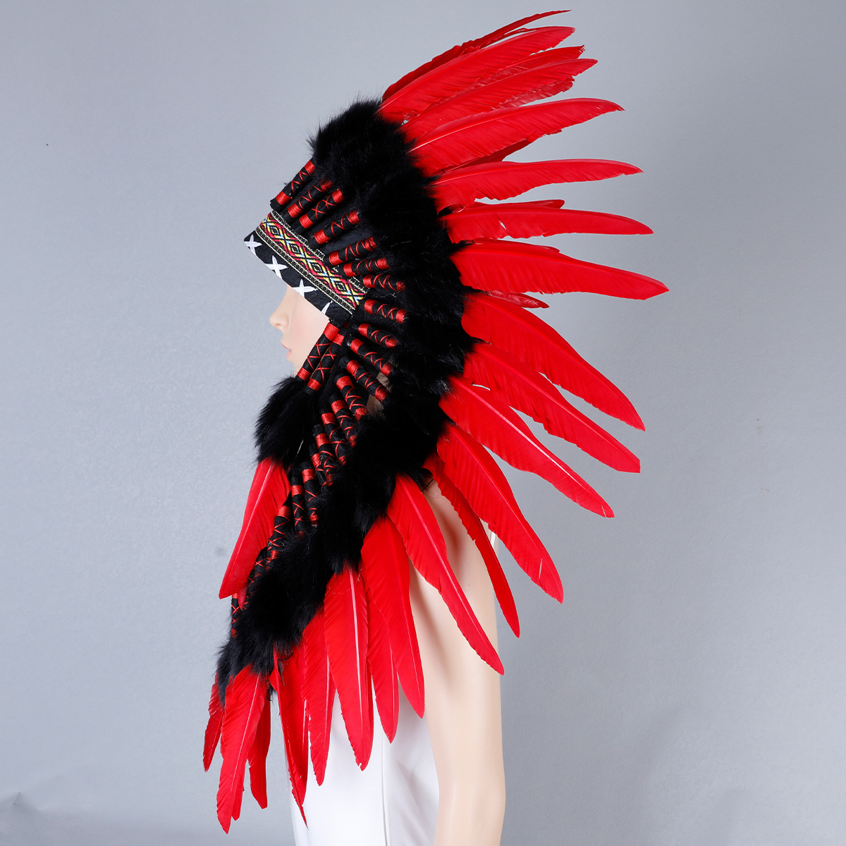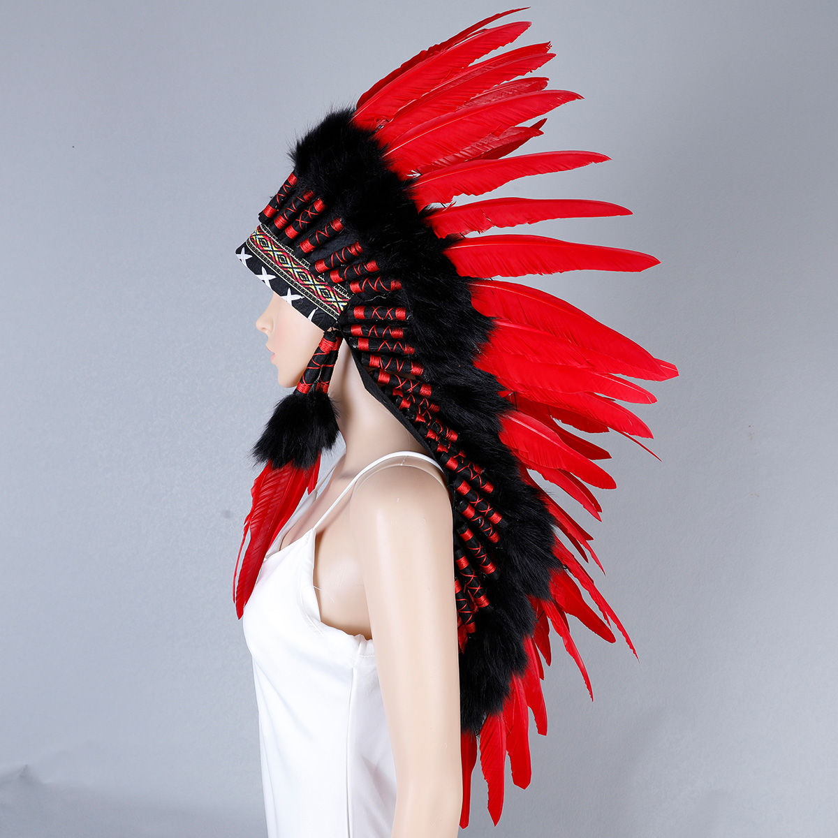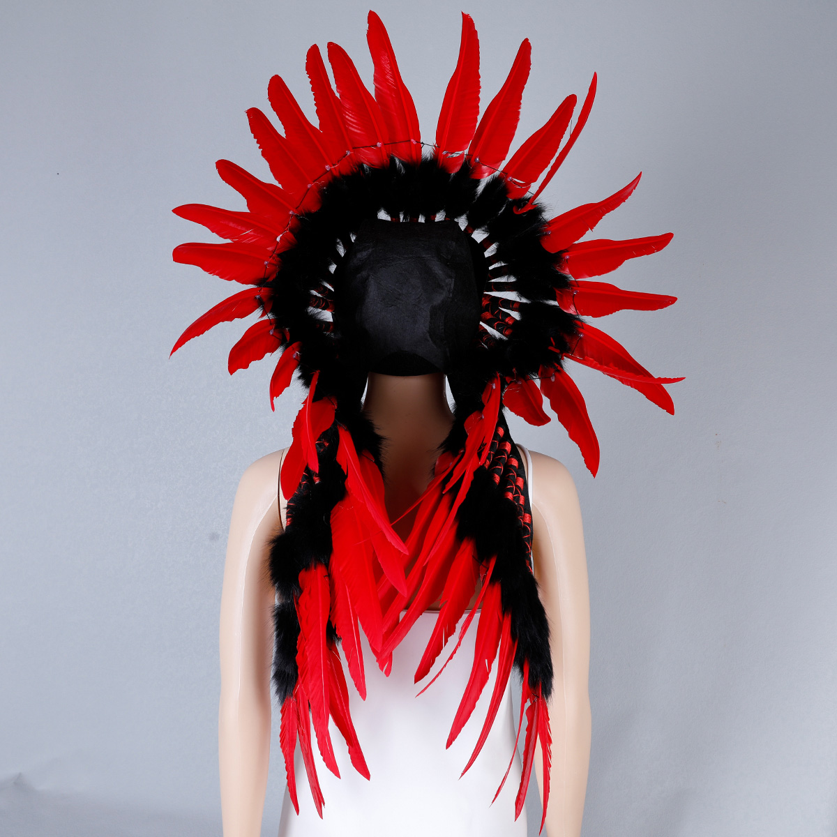 This Indian style headdress is made of natural feathers, and can be matched with feathers of different colors according to different preferences. This headdress is widely used in gatherings of major festivals such as Carnival and Halloween.