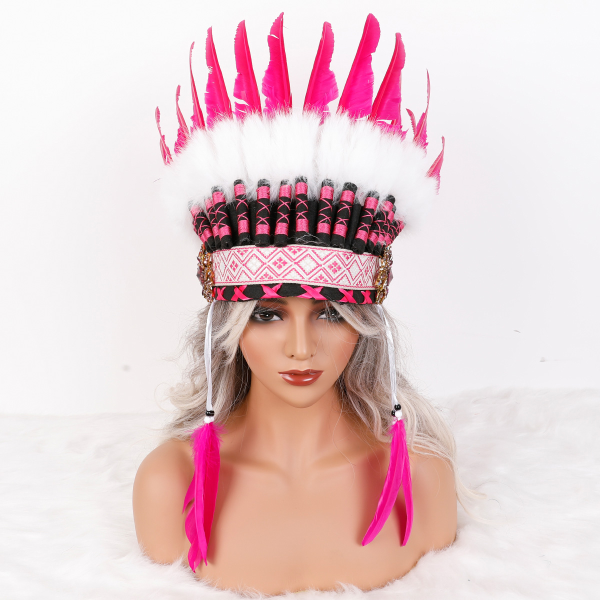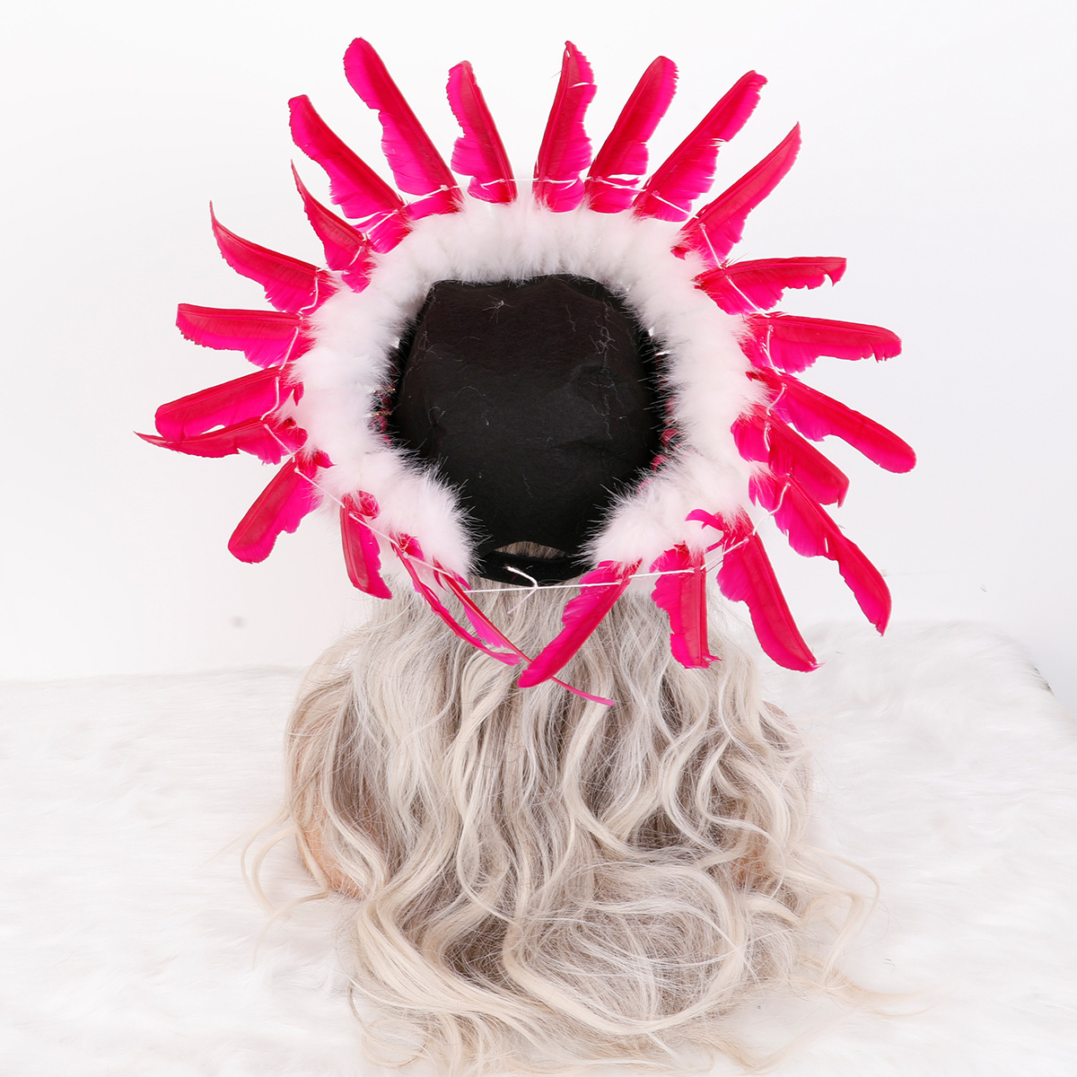 This Indian style headdress is made of natural feathers, and can be matched with feathers of different colors according to different preferences. This headdress is widely used in gatherings of major festivals such as Carnival and Halloween.