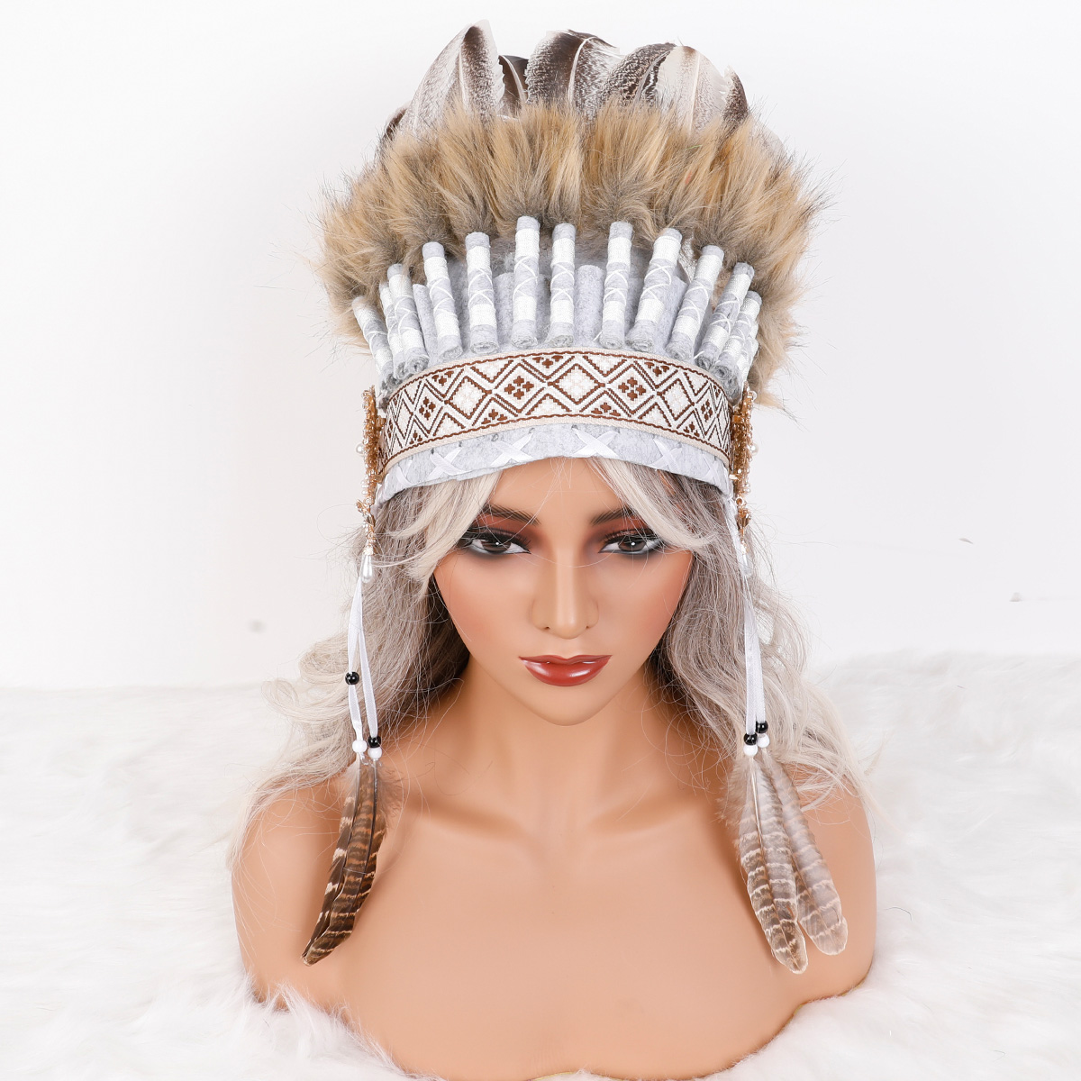 This Indian style headdress is made of natural feathers, and can be matched with feathers of different colors according to different preferences. This headdress is widely used in gatherings of major festivals such as Carnival and Halloween.
